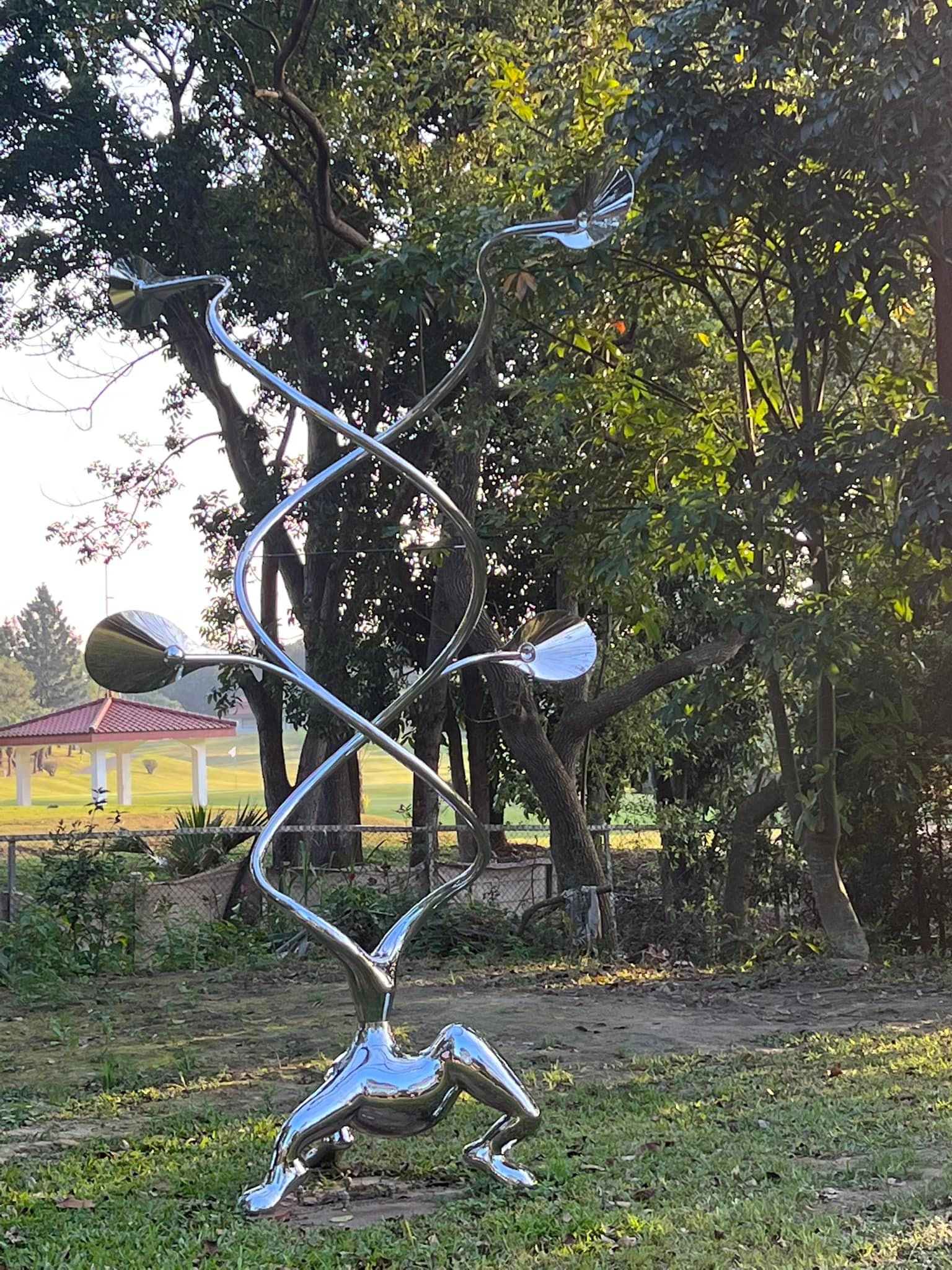 梁任宏最著名的藝術是:風動妞妞系列。