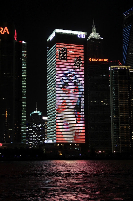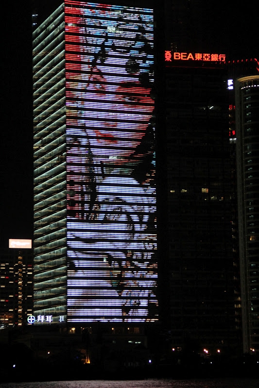 我頗喜愛花旗銀行大樓以LED燈所敘述的上海故事: