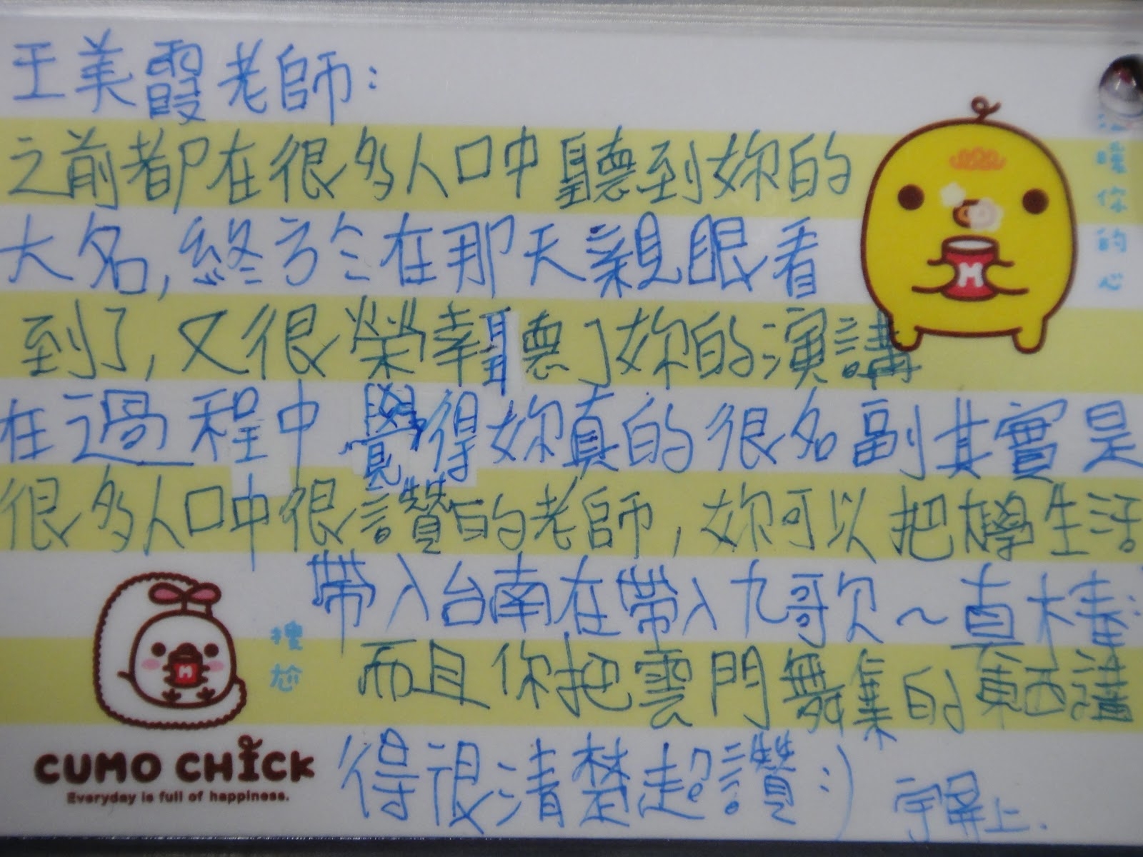 美玲老師遠從佳里捎來一疊卡片與書信,