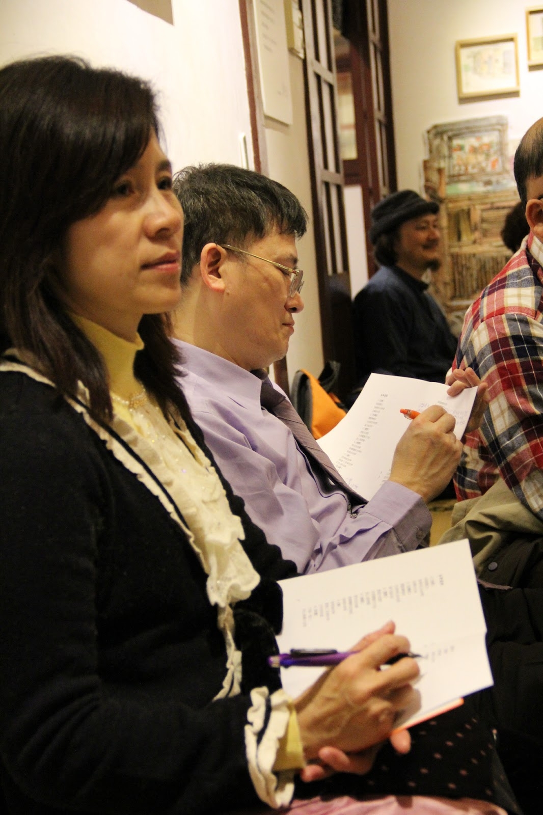 讀者聚精會神聽老師娓娓詮釋每首台灣俳句,
