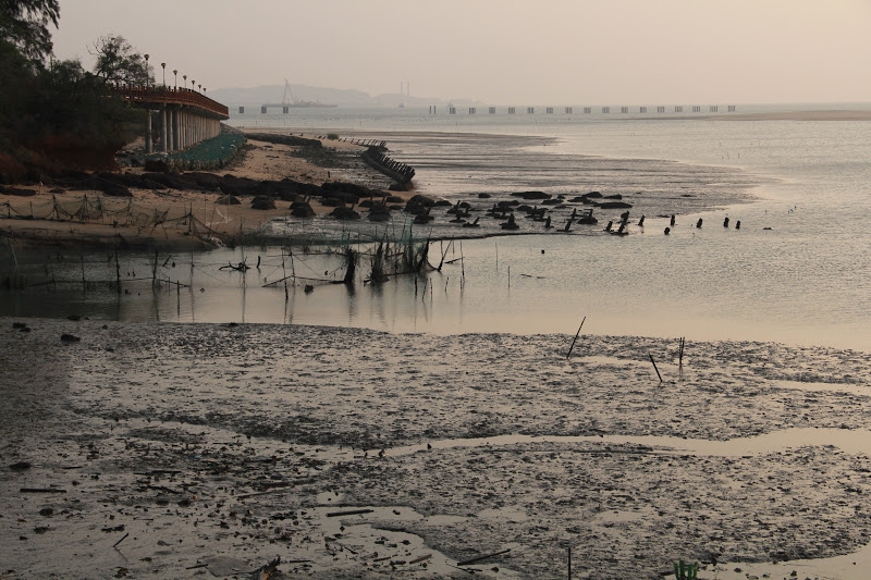 更遠處,一片退潮後的潮間沼地,