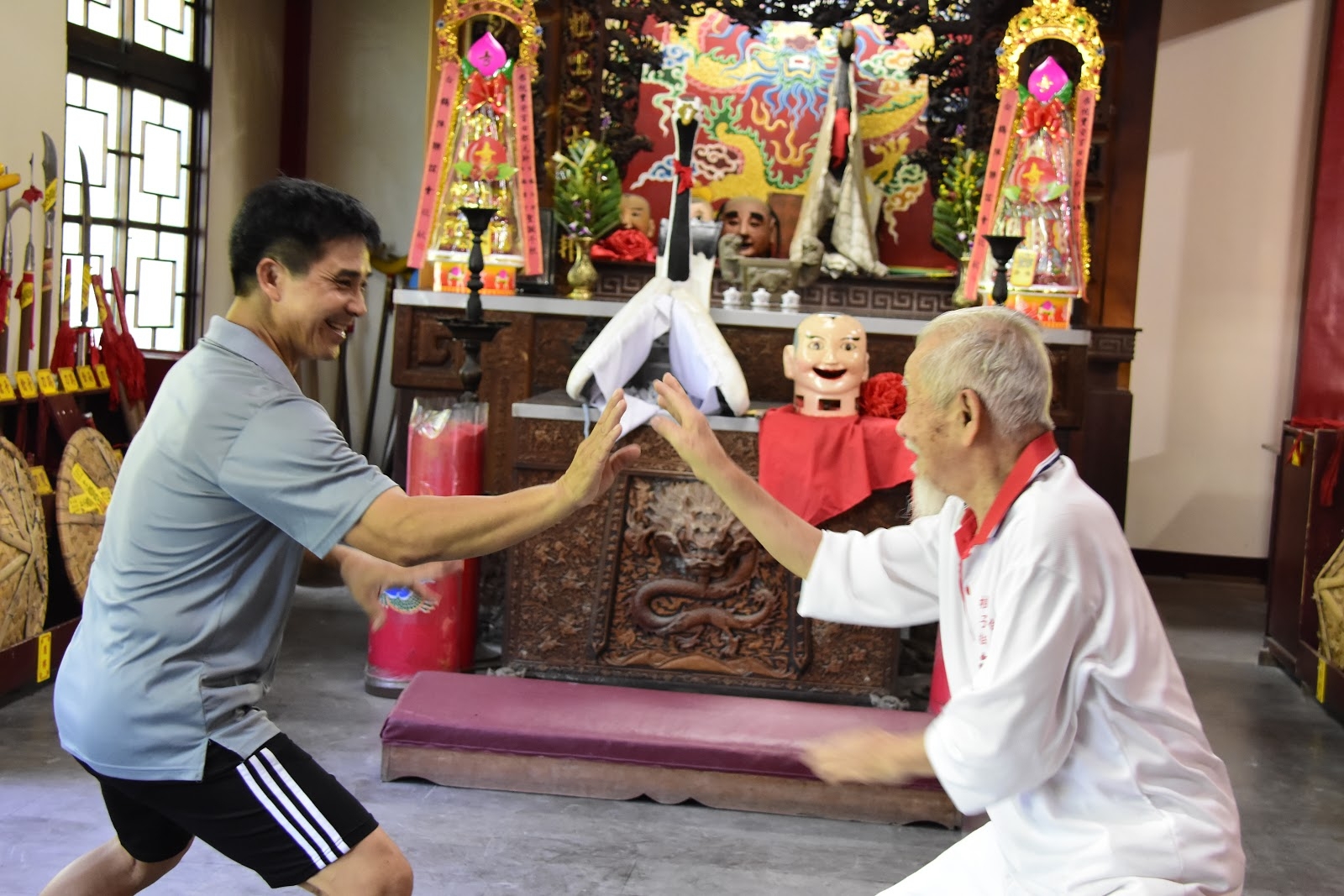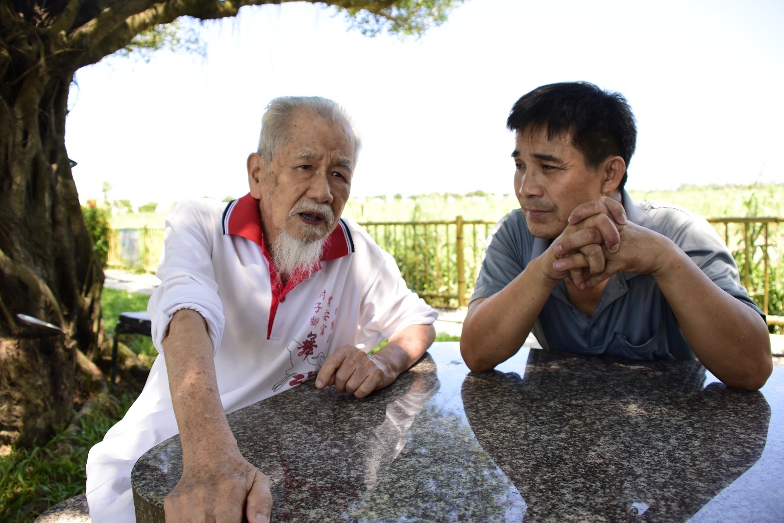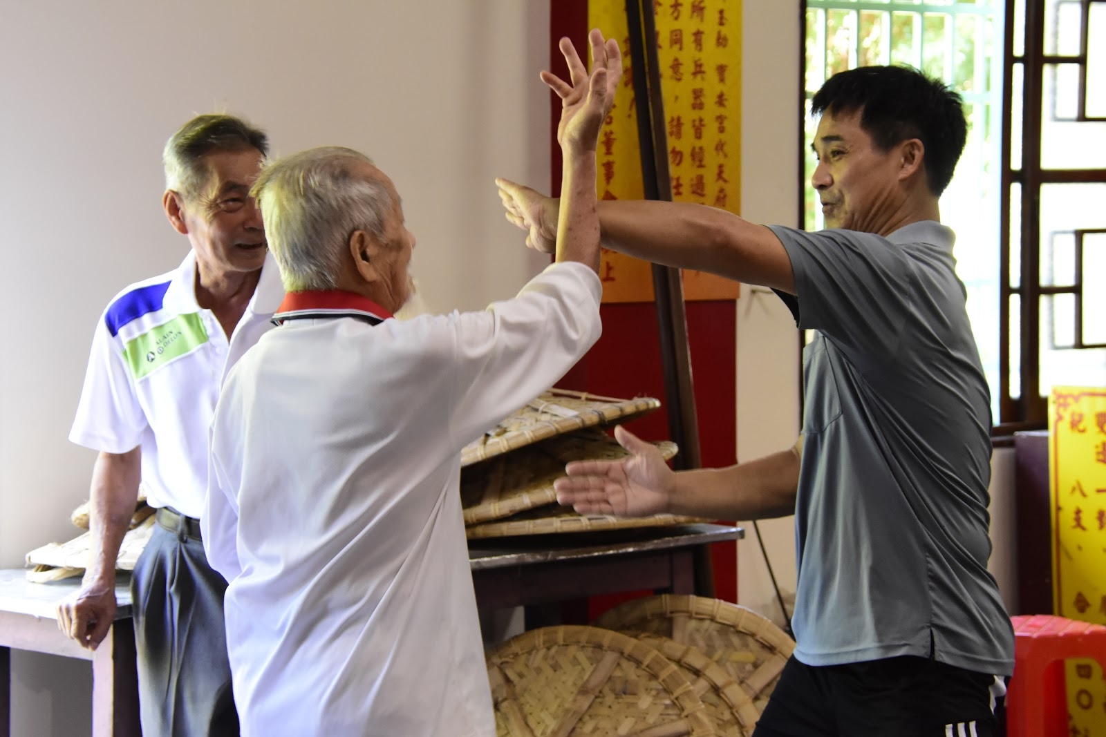 白鶴陣的何國昭,從一九六四年至今,在七股寶安宮教導庄民打拳練陣式,六十幾年來,他的堅持與努力,不僅贏得庄民的敬愛,也使得七股區樹林里的里長黃寶田在營造白鶴社區時,找到核心的共識。