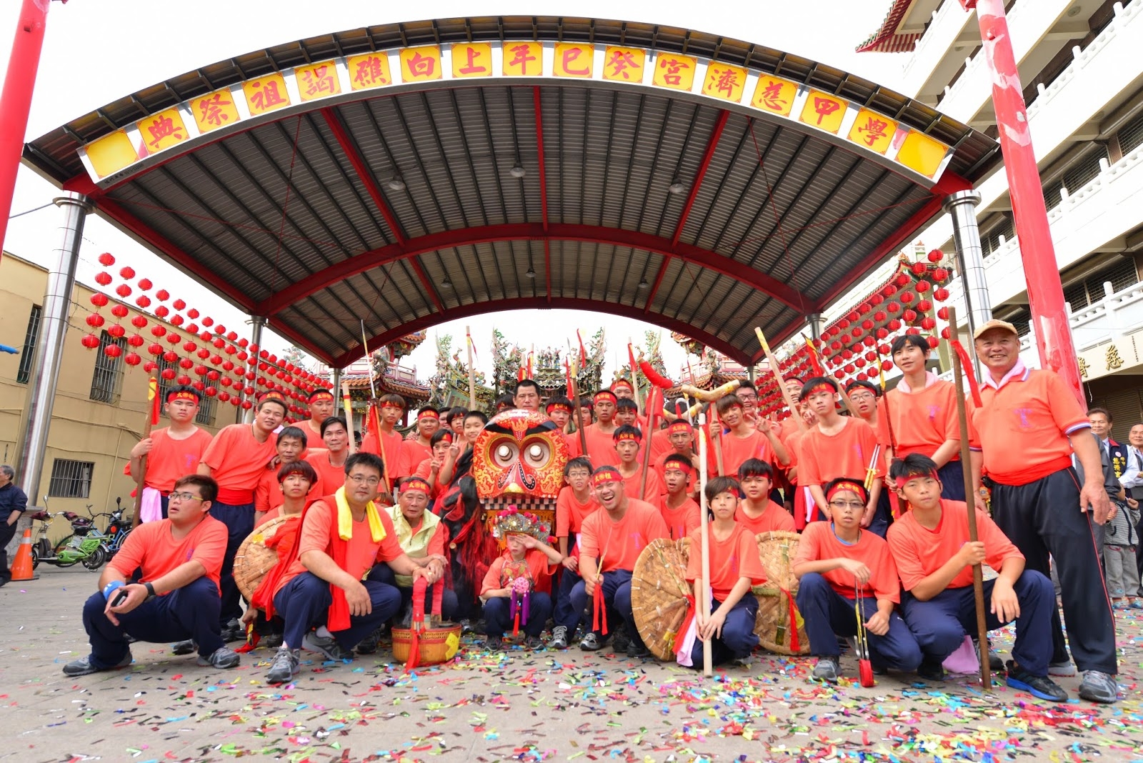 大」,總管金獅陣大大小小業務以及獅頭的製作與教學,一個陣頭的興衰,全由他一肩挑起重擔,多年來無怨無悔,只願金獅陣耀武揚威,恆久永續。