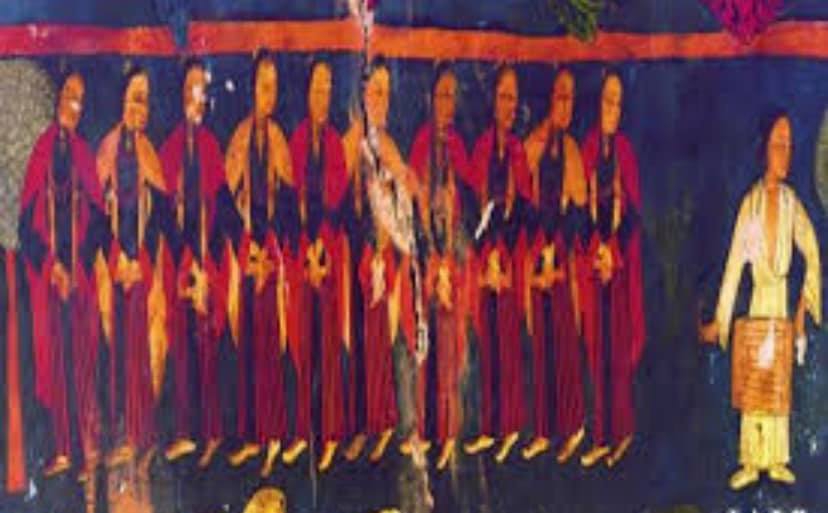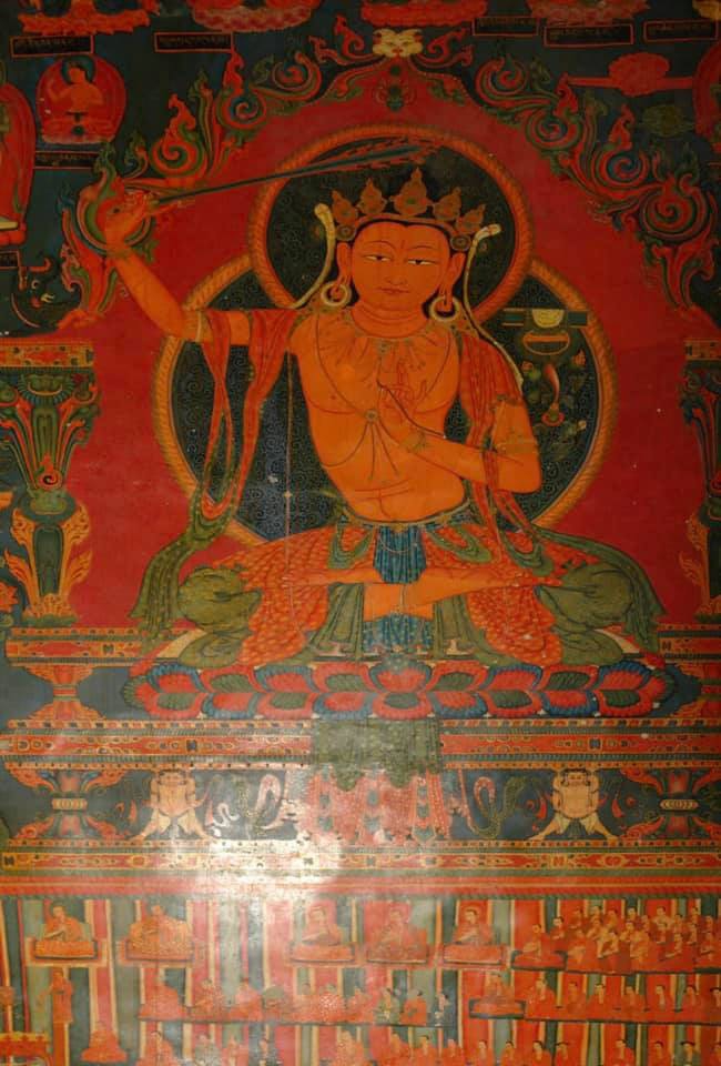 紅廟有一幅1038年阿里王意希沃迎請古印度佛學大師阿底峽的壁畫,