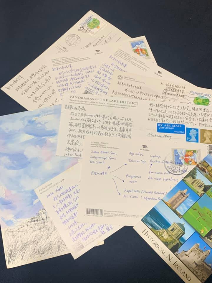 我還記得一群笑臉盈盈的女孩坐在一起寫明信片,