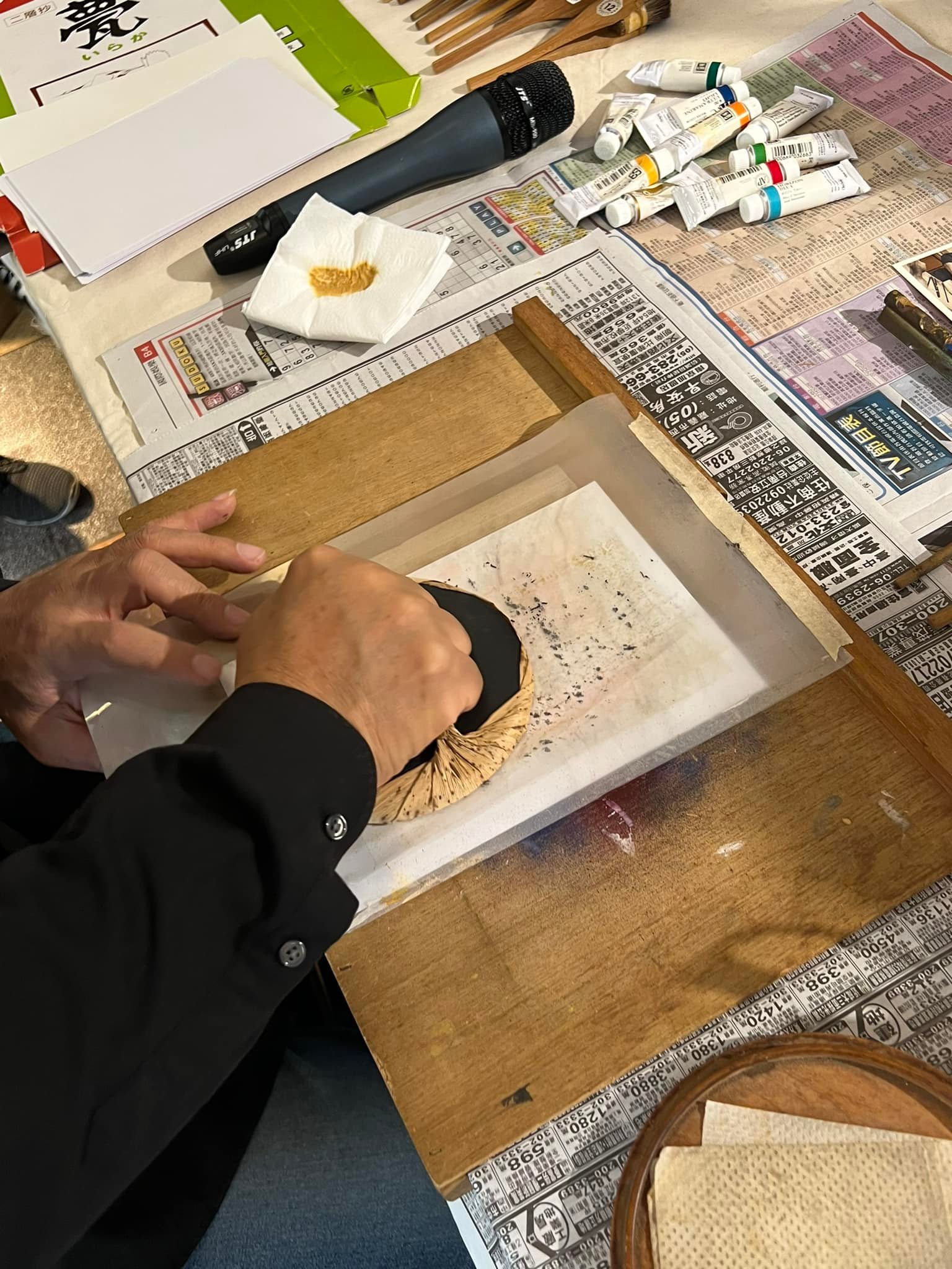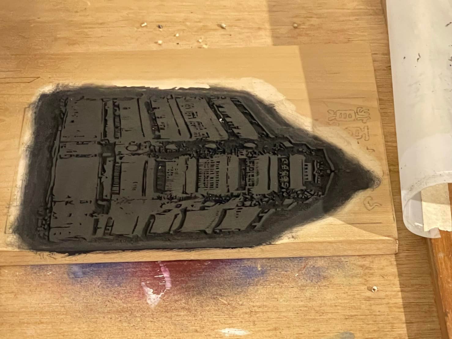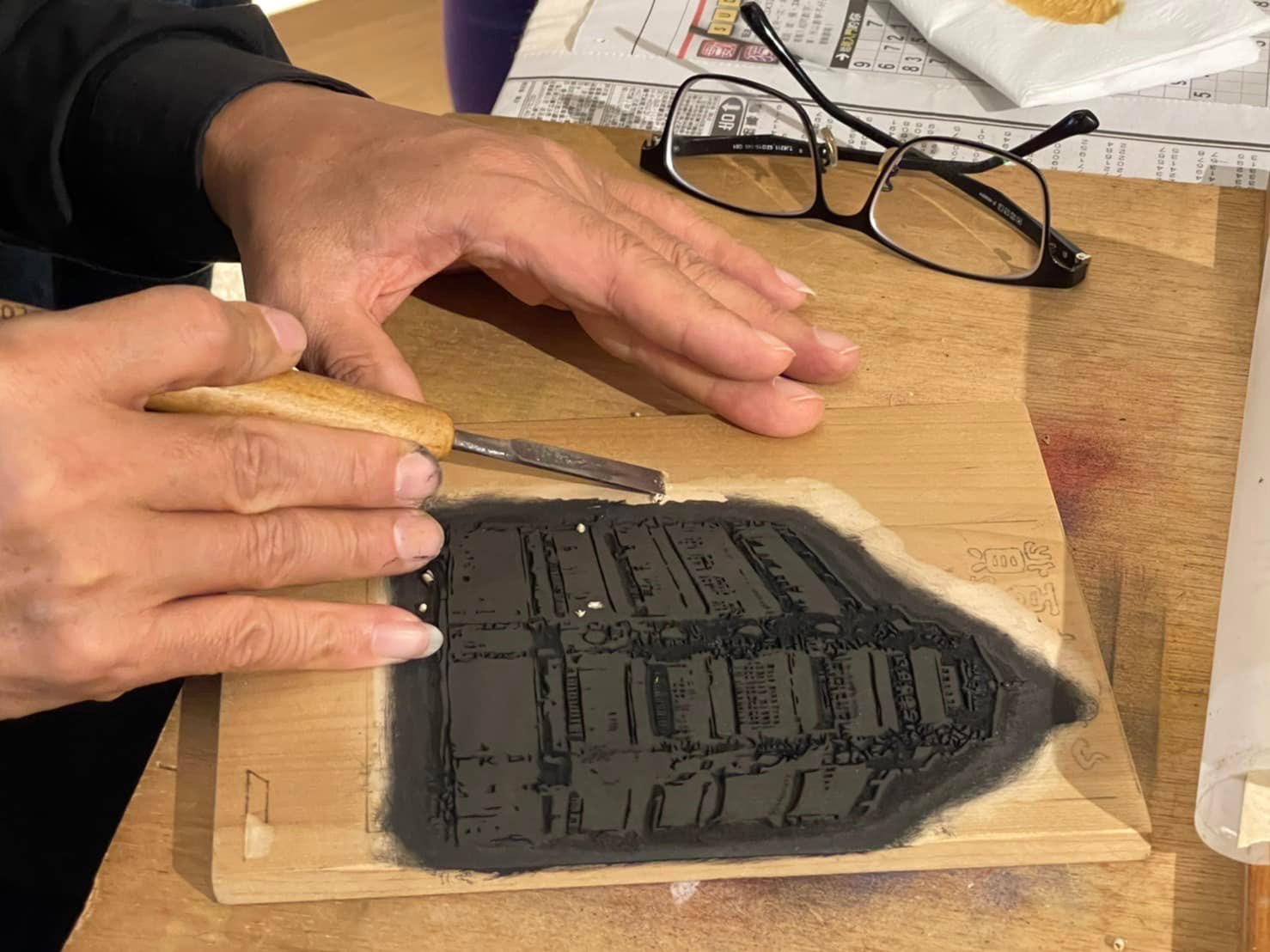 為了今天的課程特別製作一張以林百貨建築為主題的版畫,
