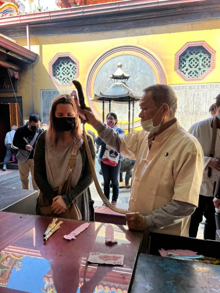 我帶著幾位外國人走街、拜拜。