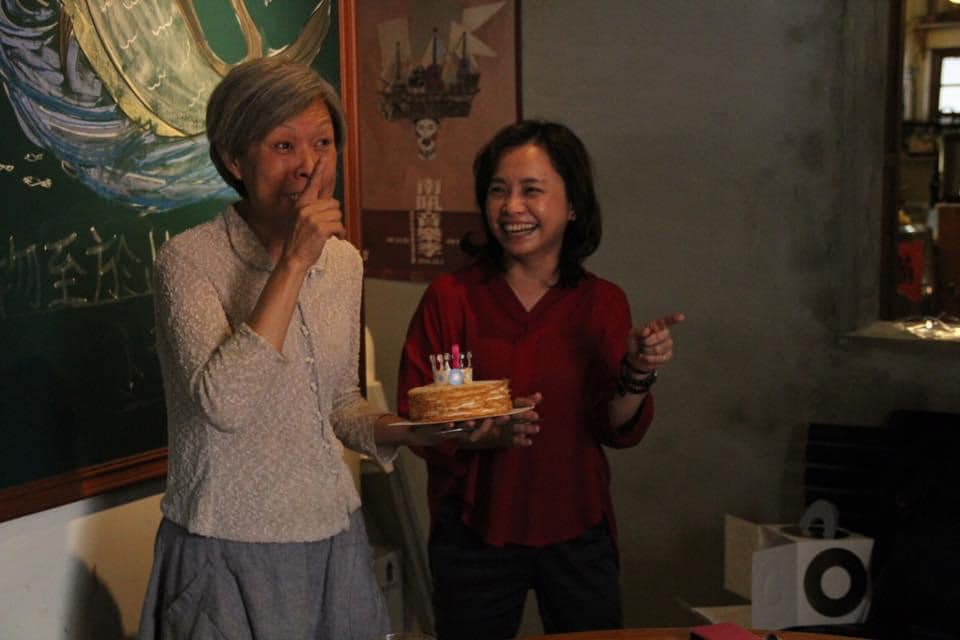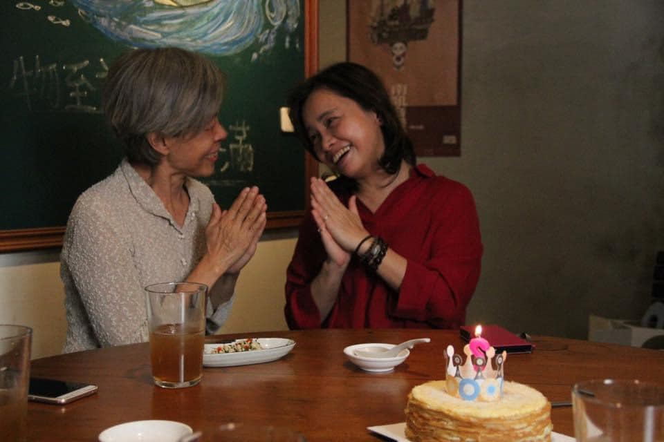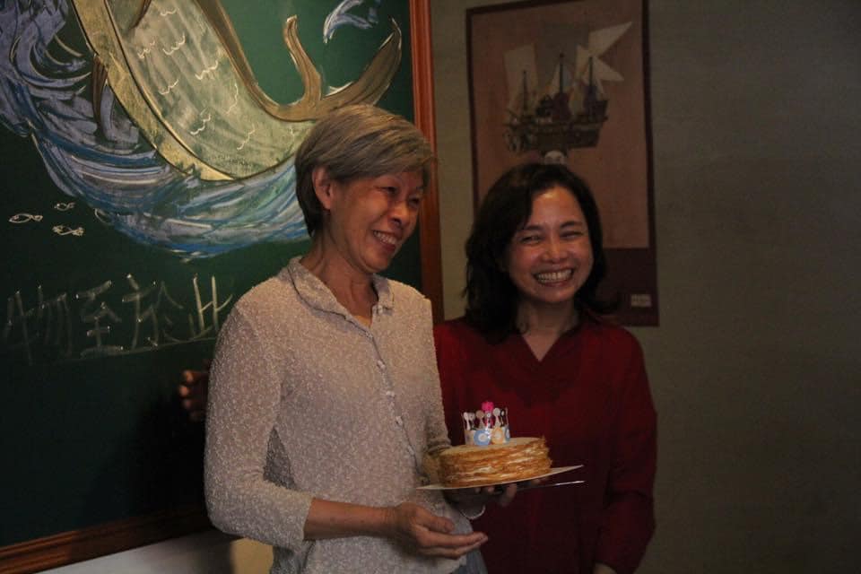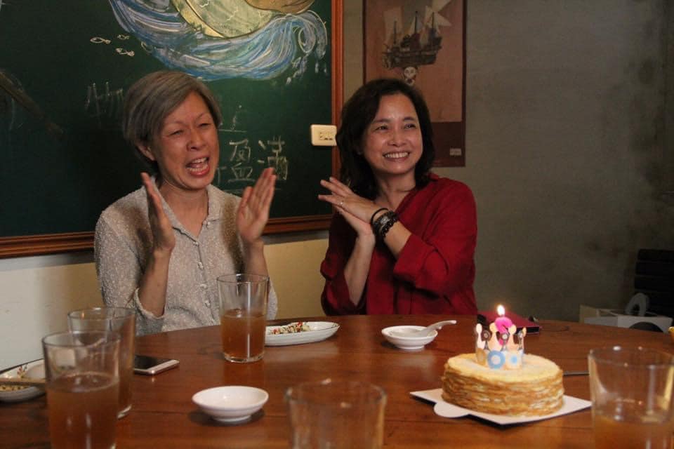 抬頭看到我們為她準備生日蛋糕的那一刻,