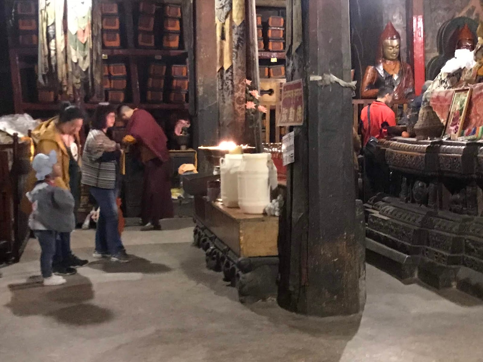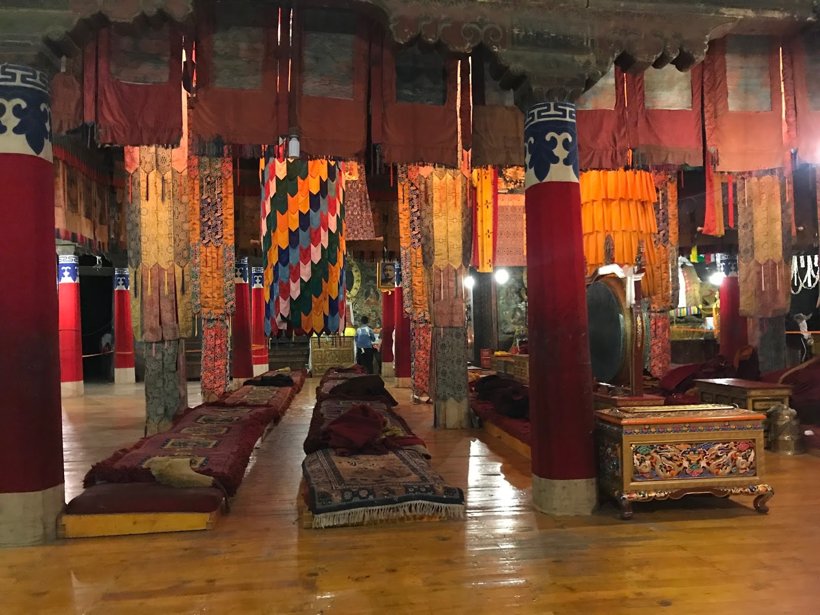 因為有薩迦(花教)、噶當、格魯(黃教)三個教派在同一寺廟裡,