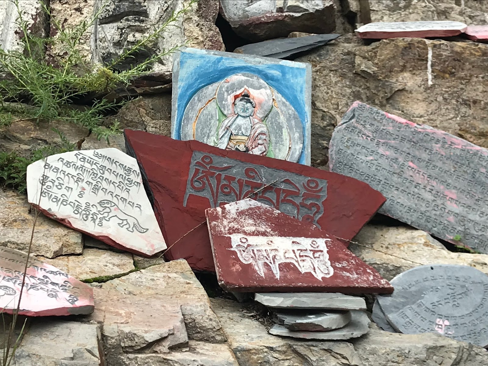 因此,山體上遍布許多祈福的石雕板、瑪尼石,