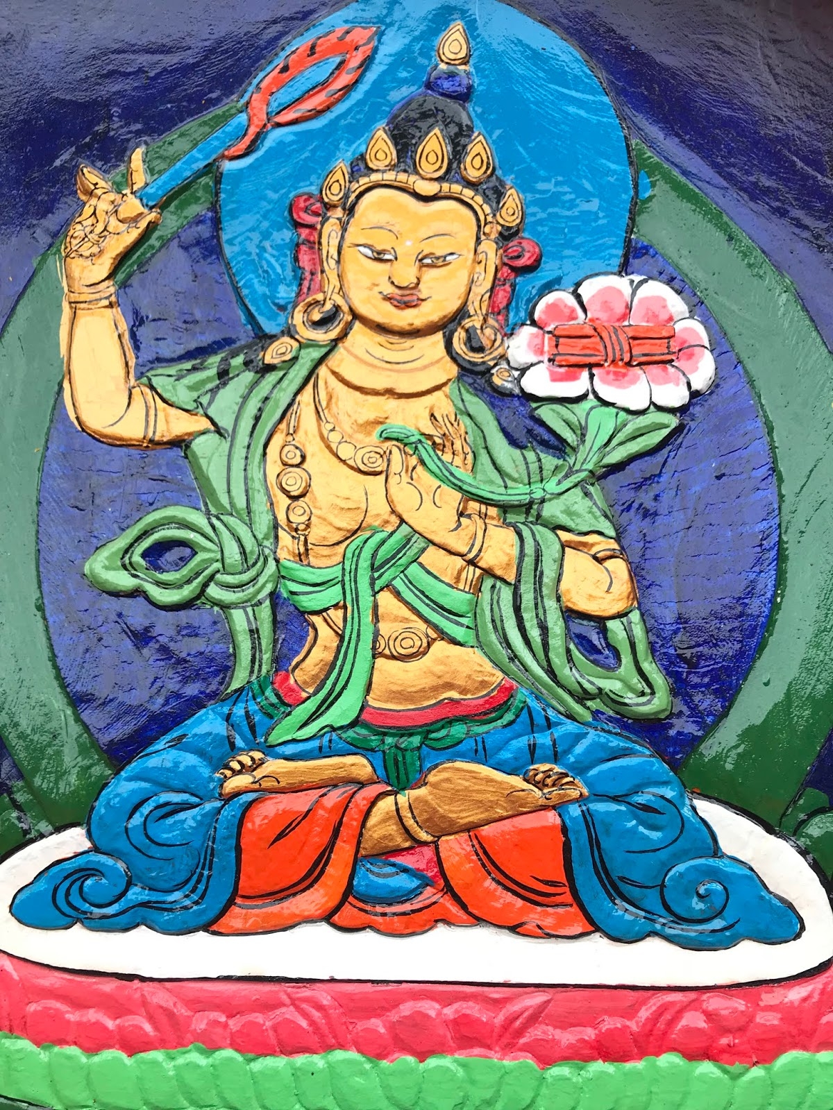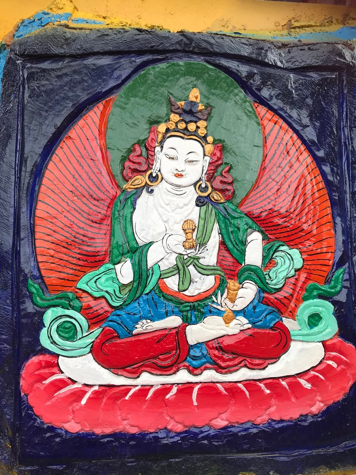 於是他便請工匠依照所現雕刻佛像及六字真言。