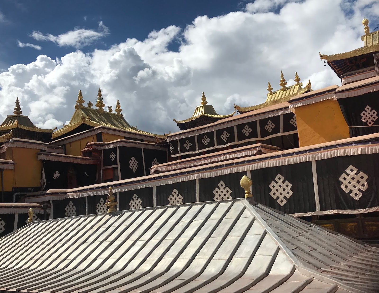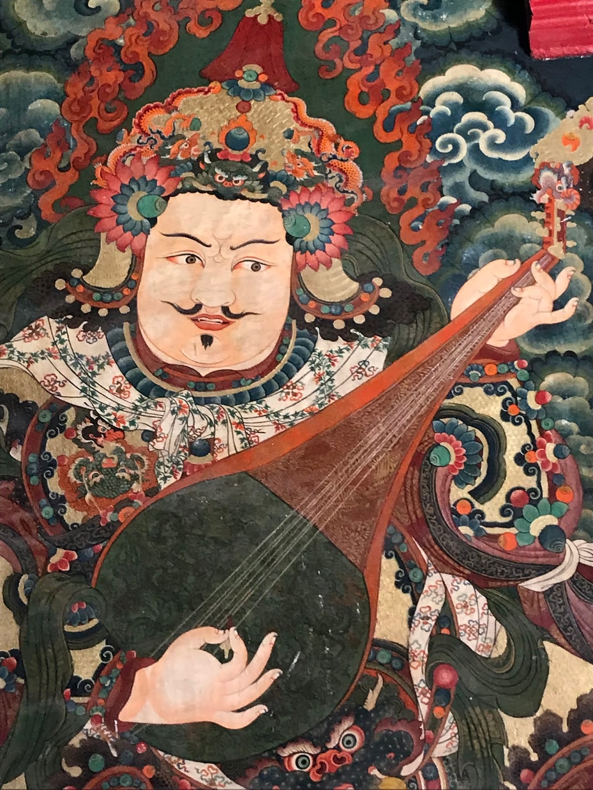近觀各式法器及廊廡間的披帳、經幡,