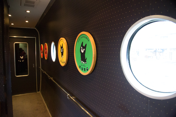 在車廂的通道連結處,一邊是廁所,另一邊的走道類似設計成畫廊的感覺,上面擺放的主角,當然非Kuro莫屬。