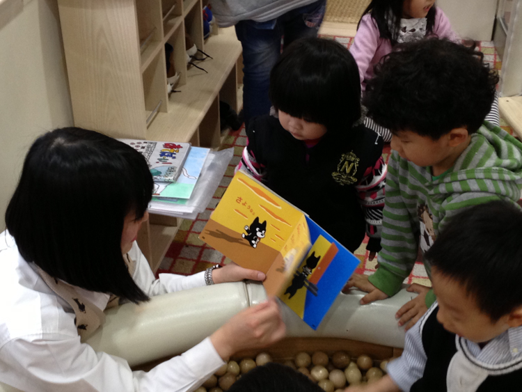 球池外有一位專屬配置在這這空間的列車姐姐,會翻著Kuro繪本說故事給小朋友聽(Kuro連繪本都有!)。像我們家水果這種聽不懂日語的,沒關係,列車姐姐等一下會帶著做Kuro折紙,手作世界無國界啦!