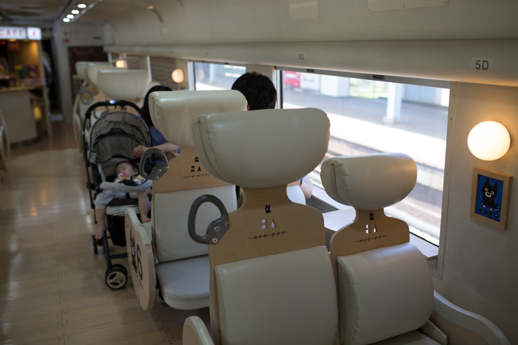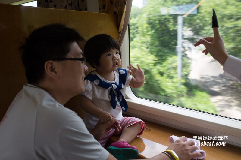 當然帶著小孩的我們,也可以劃親子區喔,一大一小的座位,腰靠跟座位的深度都細心的照顧到了,真的很佩服日本人的用心。(但是我兩次都沒有劃到座位區,不知道是不是因為我劃位時都是我自己去的,網友說沒有看到一大一小,站務員是不會把親子座位畫給你的)。但還好的是,以我兩次搭乘的經驗,這親子區都沒什麼人呀,所以稍微坐一下拍拍照是沒問題的。