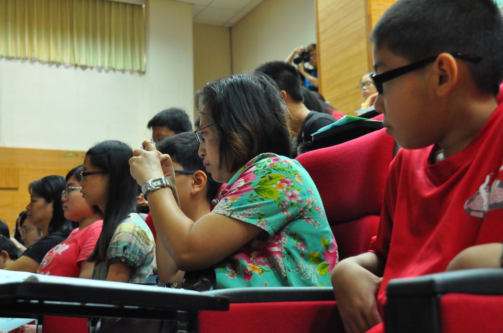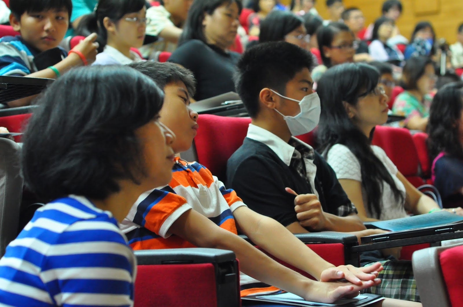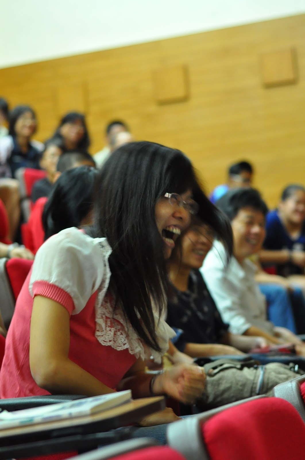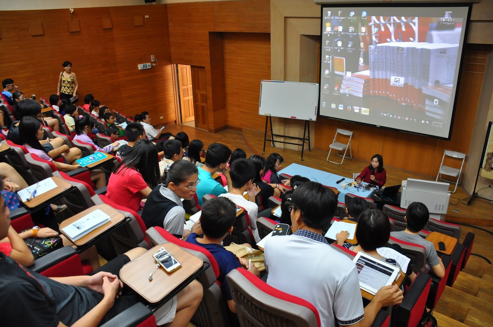 座中的學生竊竊蠕動、喃喃耳語…「怎麼啦?」「奇怪?」…