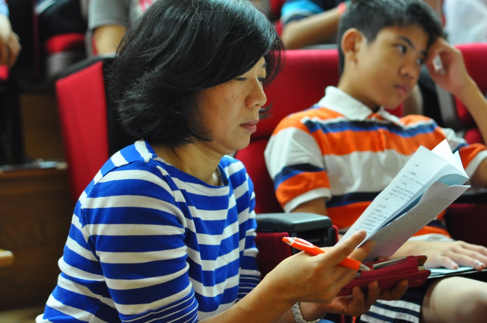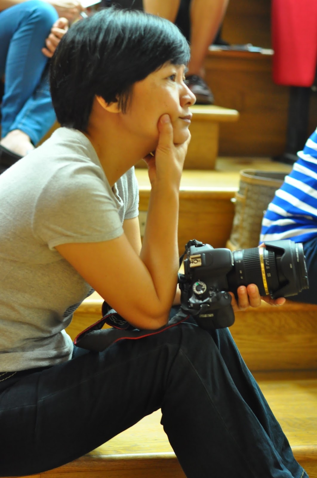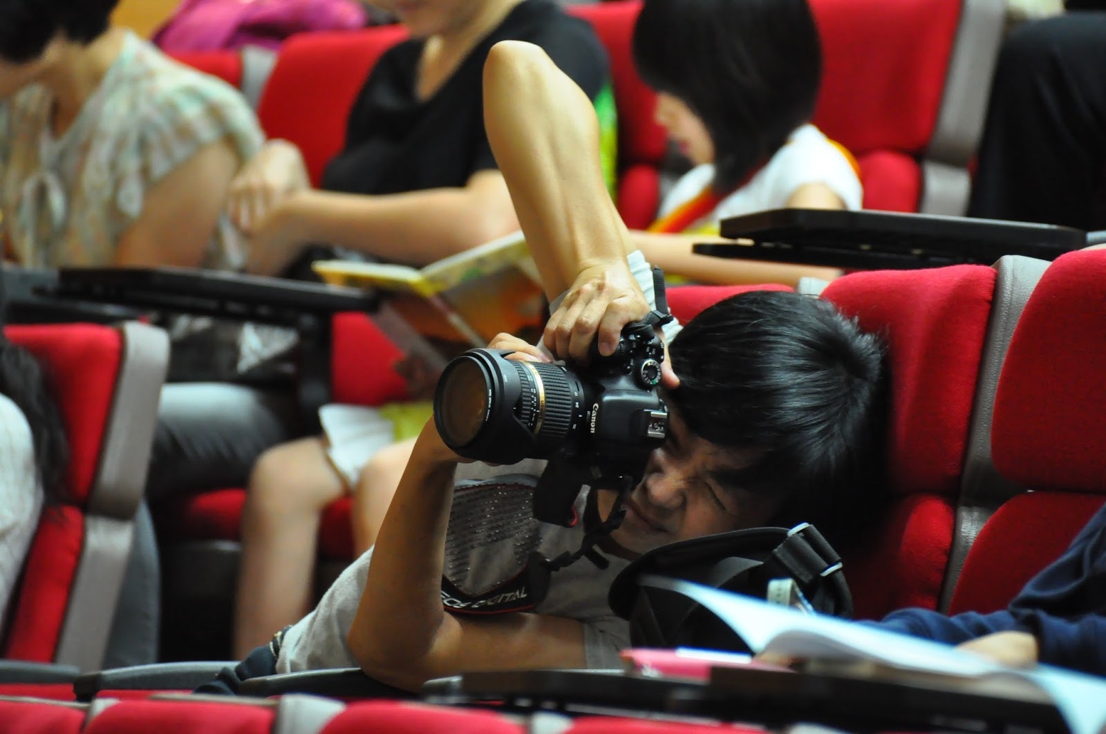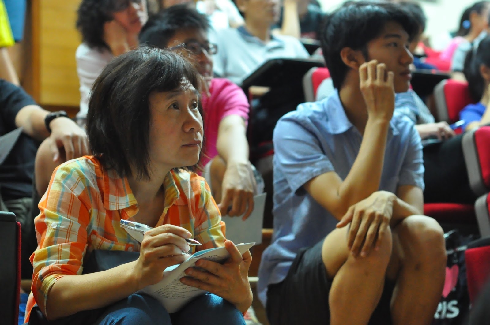 座中的學生竊竊蠕動、喃喃耳語…「怎麼啦?」「奇怪?」…