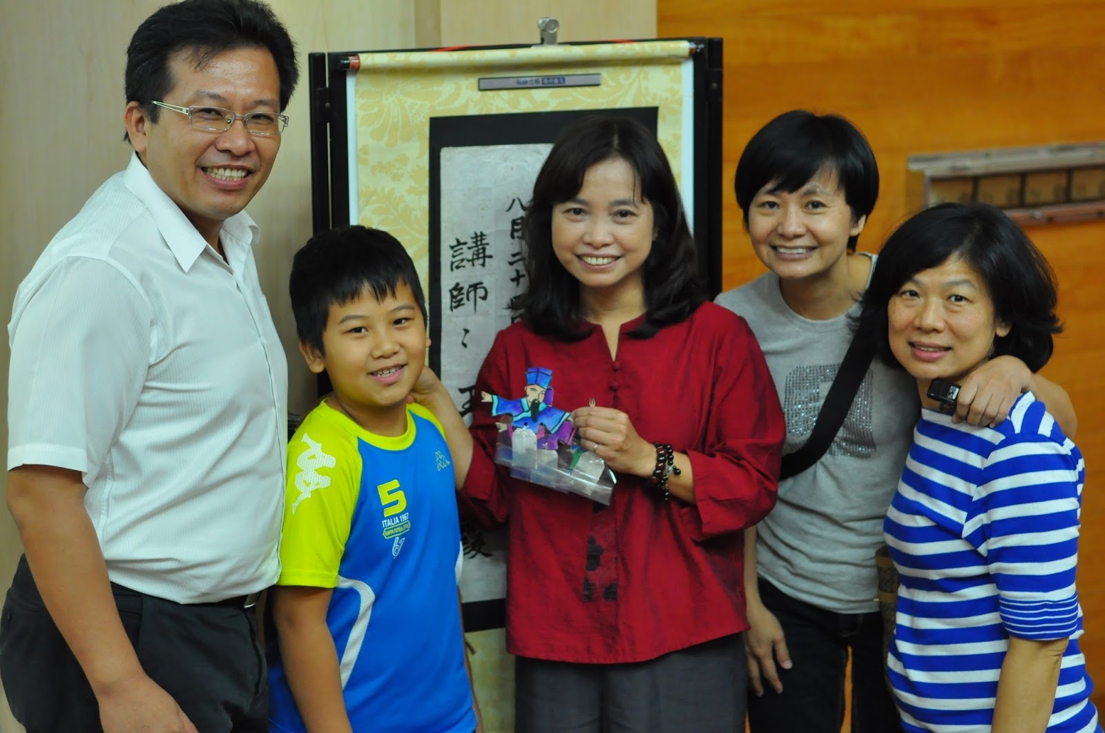 老師飄然入室,右手執一把紙扇,