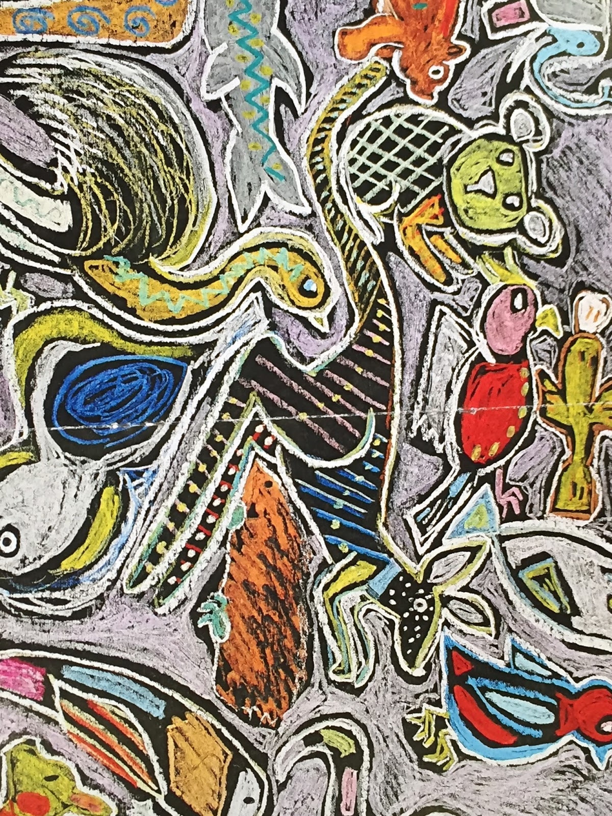 在她大膽揮灑生命圖案與顏彩的畫布裡,