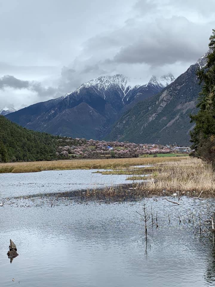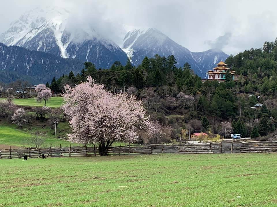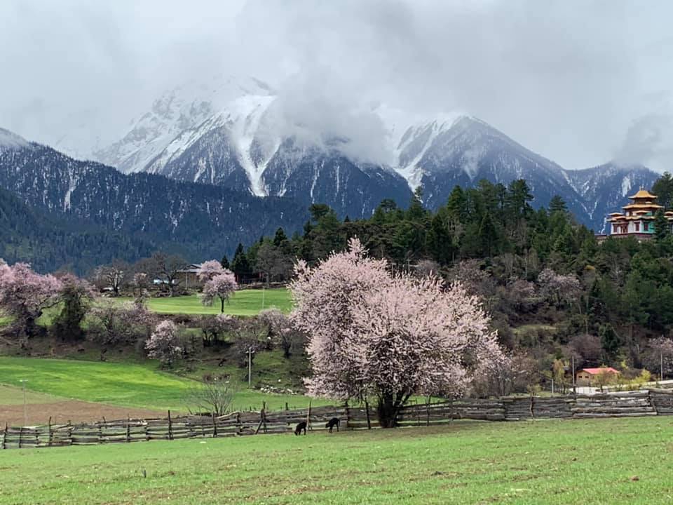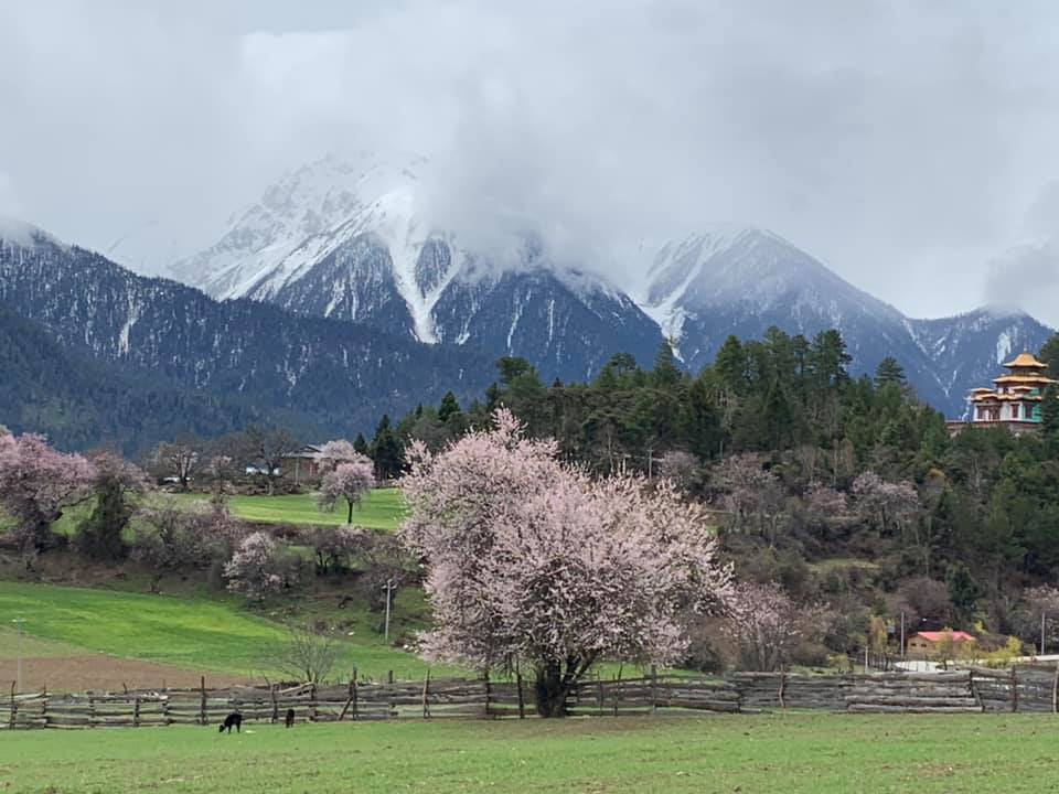 戴著終年不化的皚皚白帽為桃花舞者致敬。