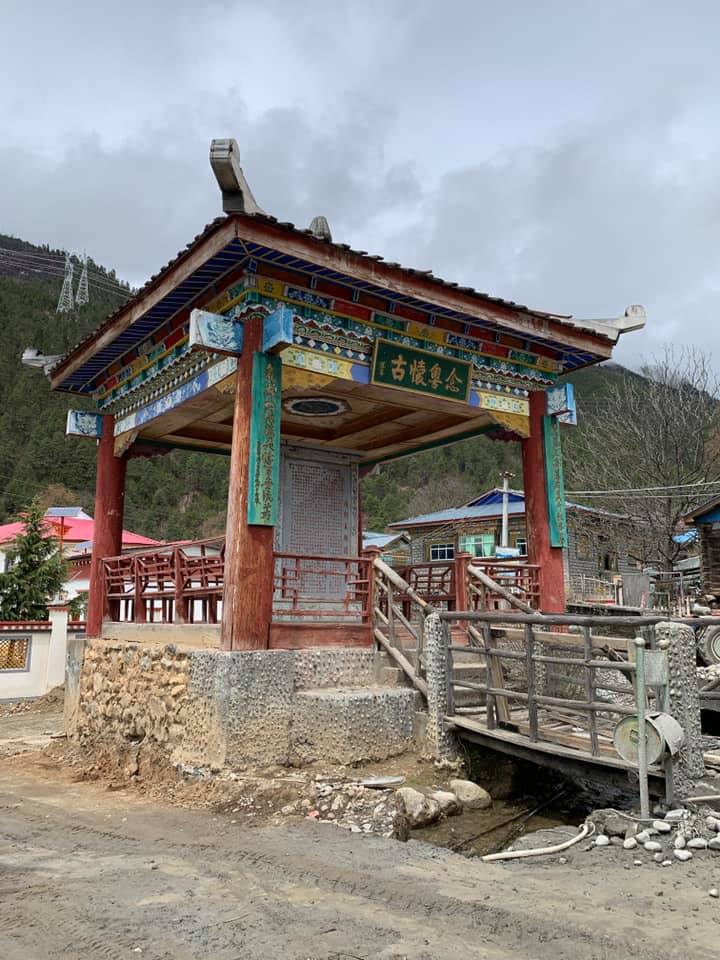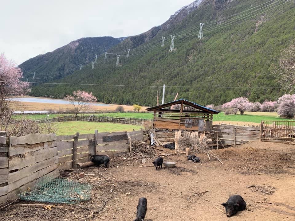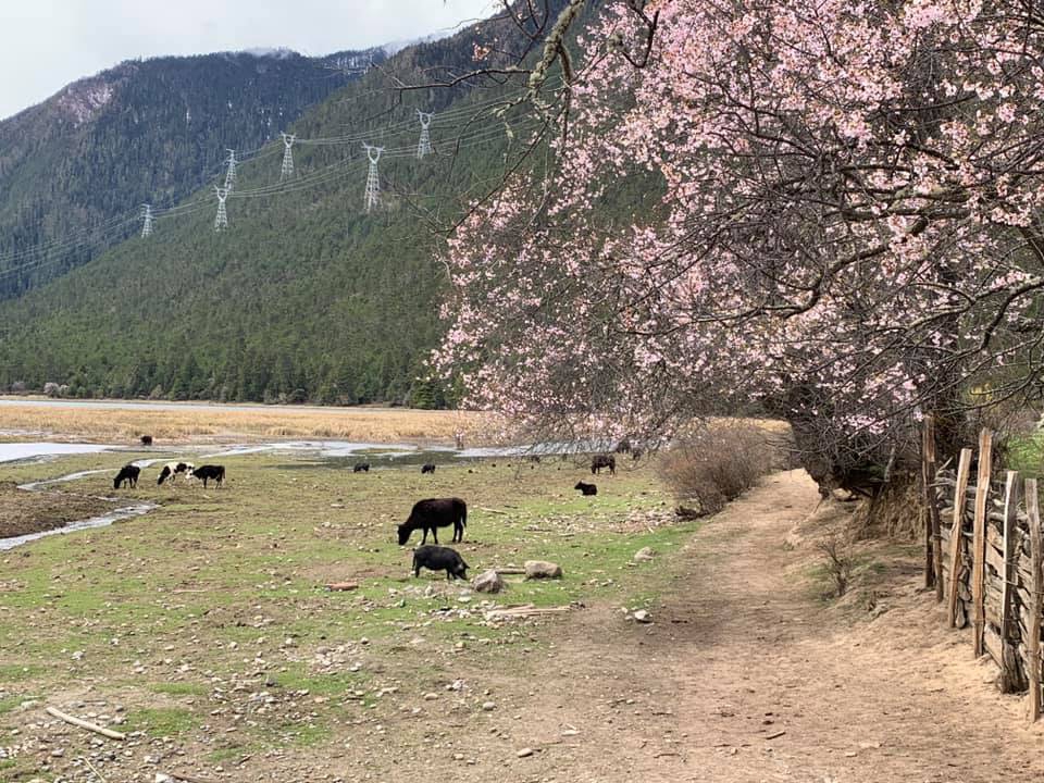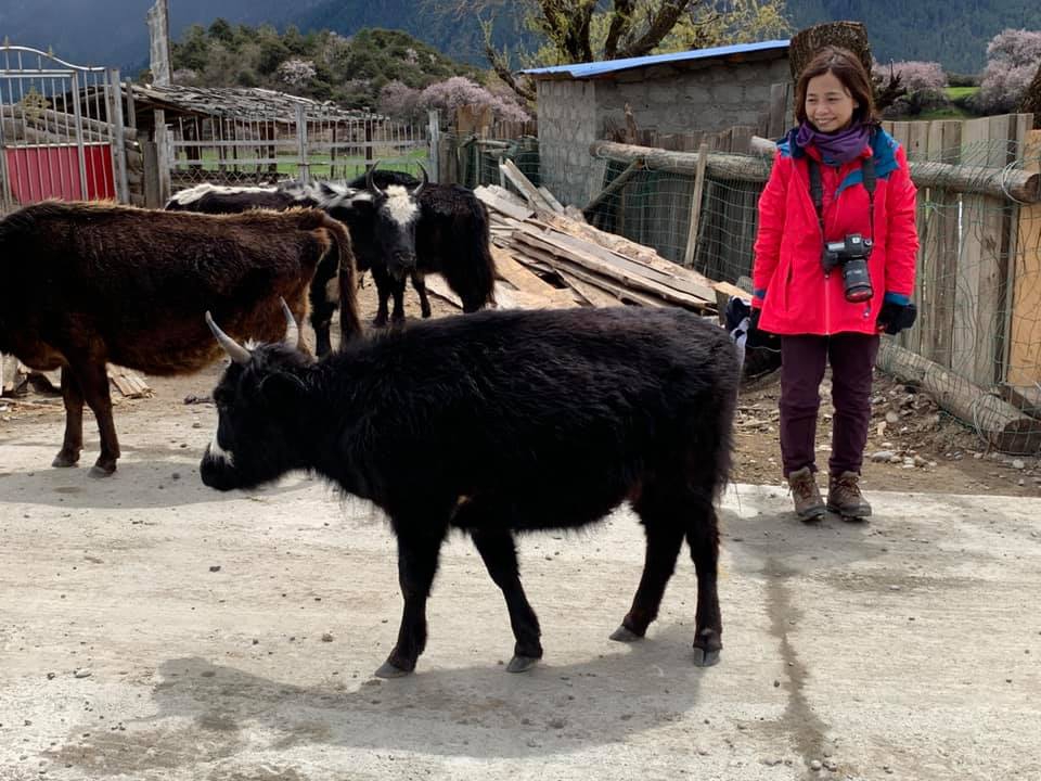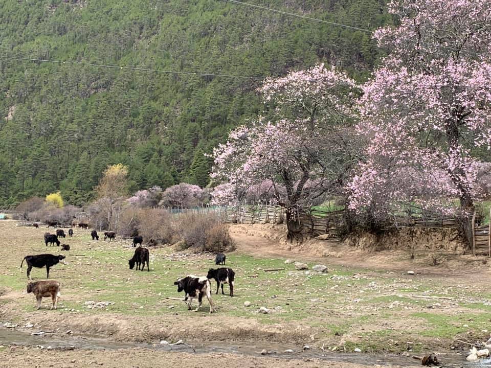 藏犛牛、藏偏牛在村路上視若無人的緩步,