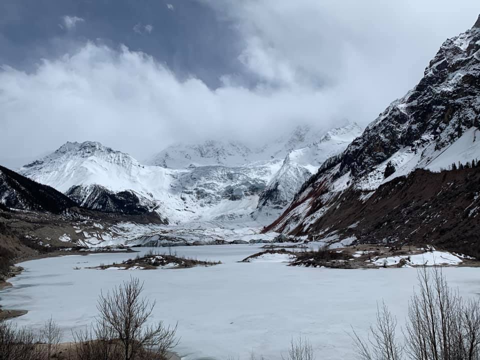 米堆冰山在念青唐古拉山和伯舒拉岭山的接合處,