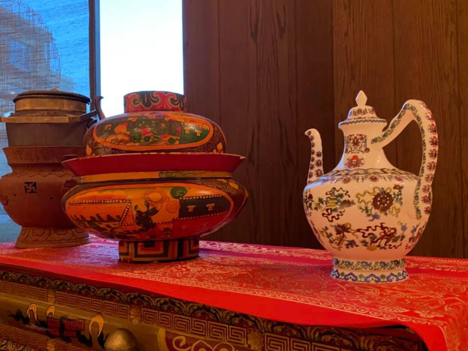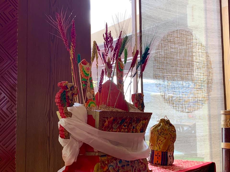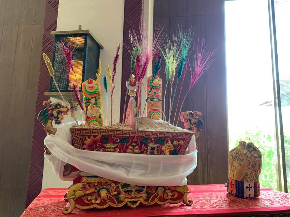 內盛青稞穗、酥油花、糌粑粉等等吉祥物都還在,